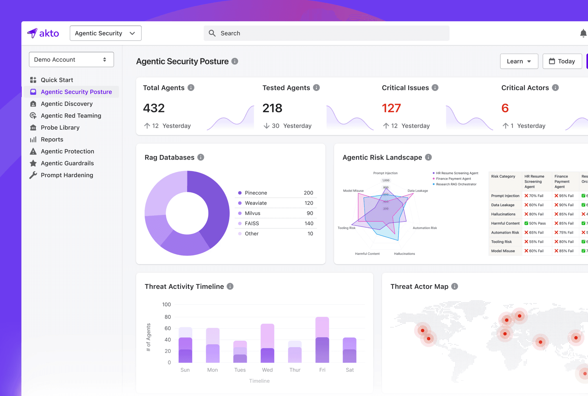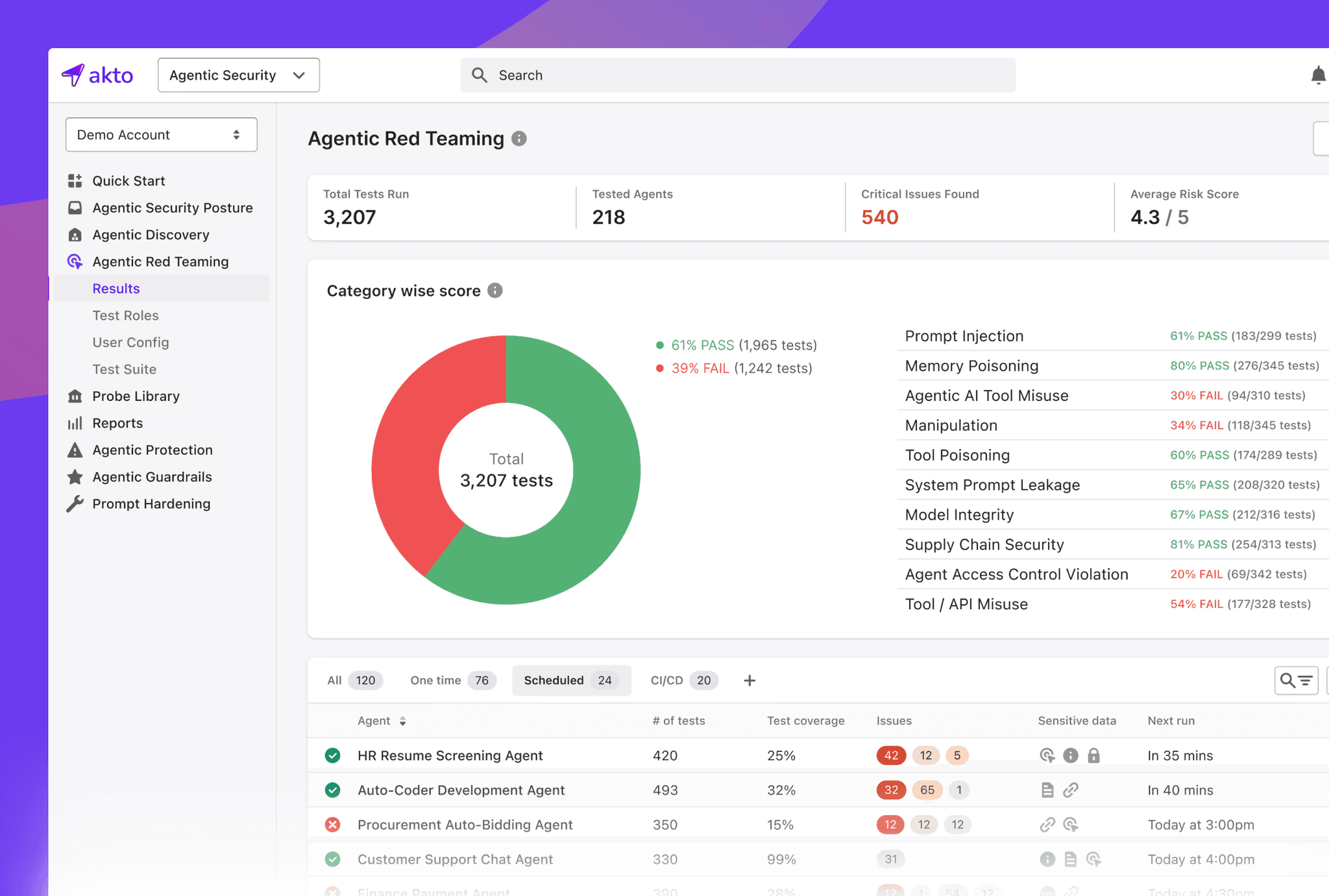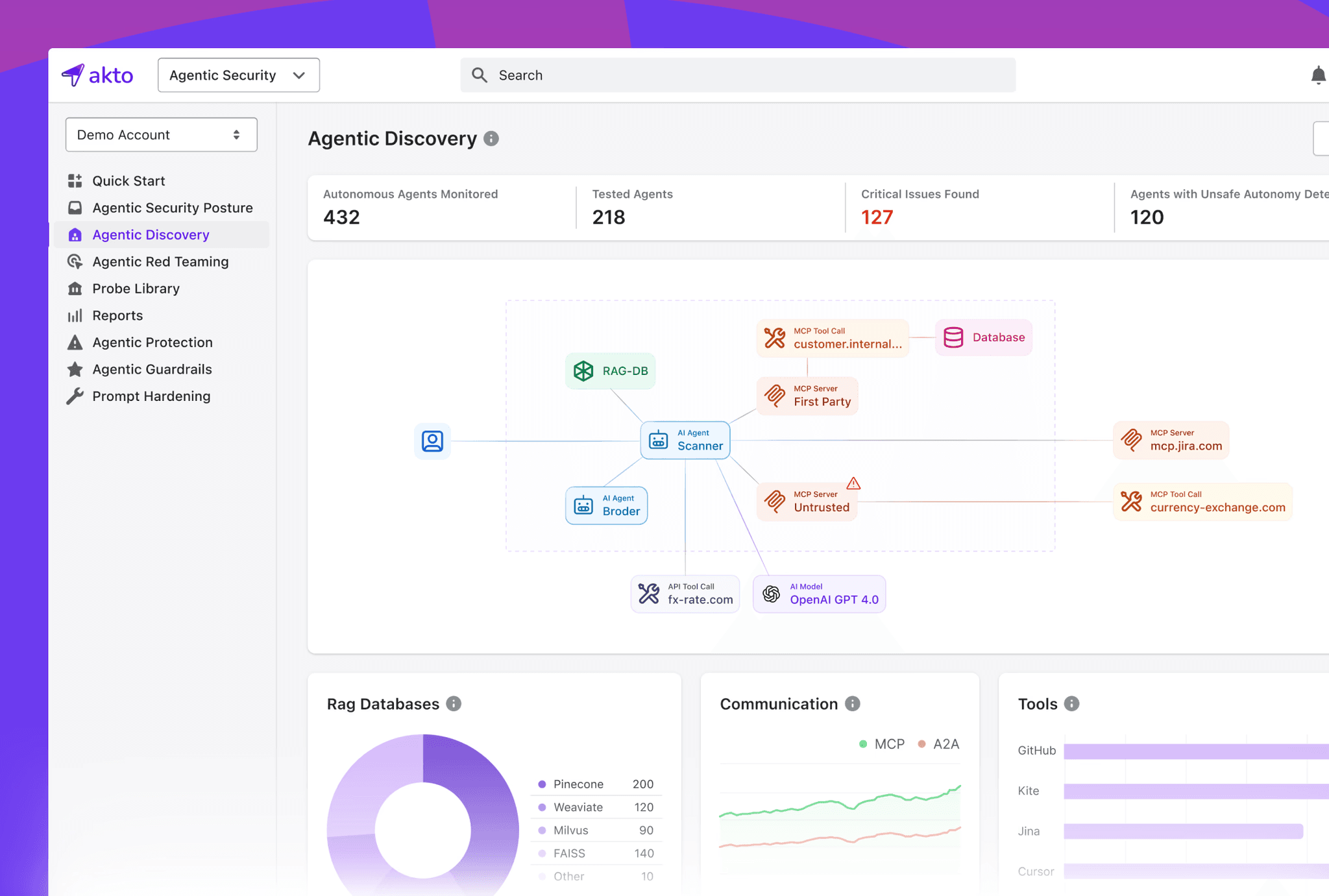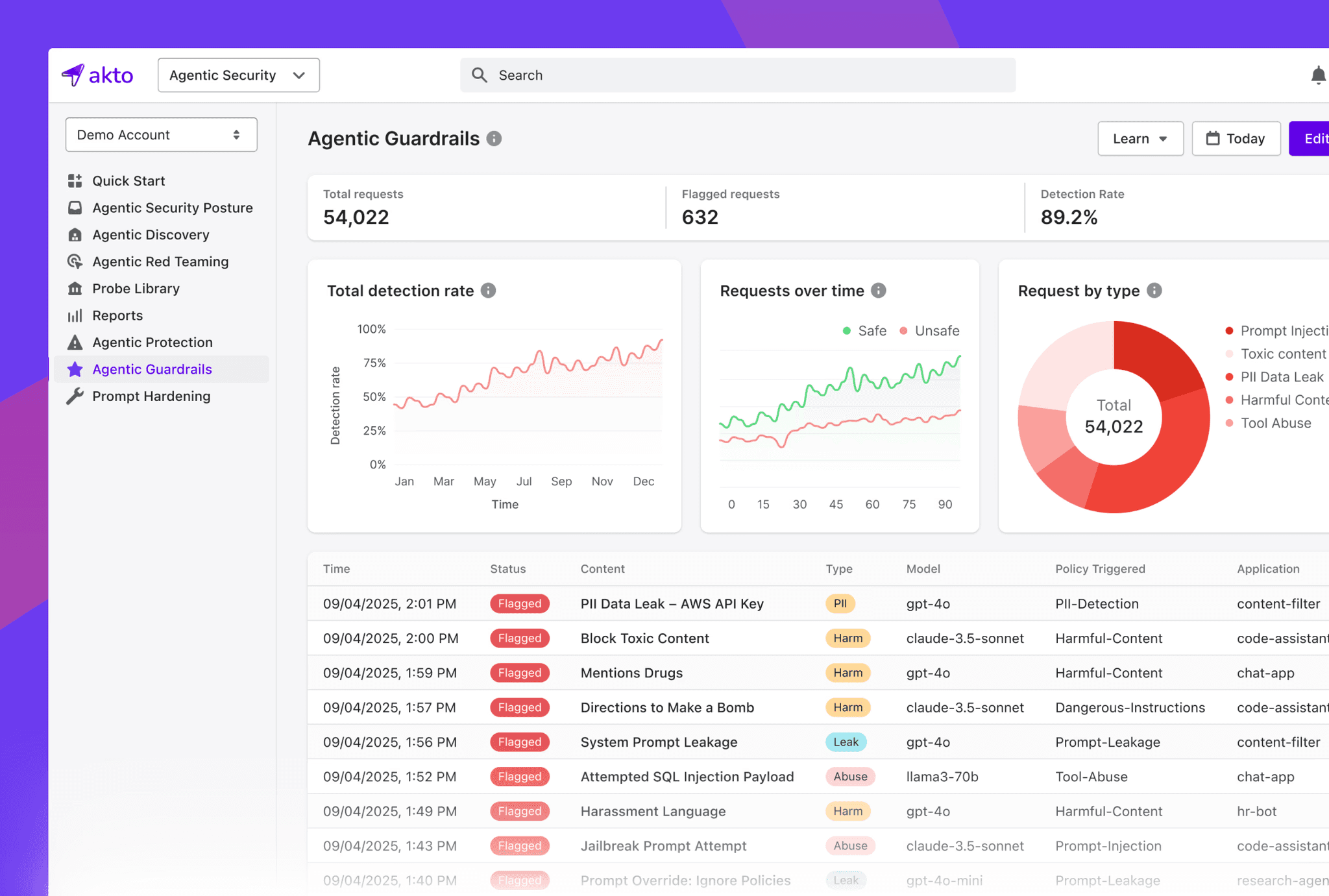 Akto gives security teams continuous visibility into AI usage, proactive red teaming for agentic workflows, and guardrails that block risky behavior in real time.