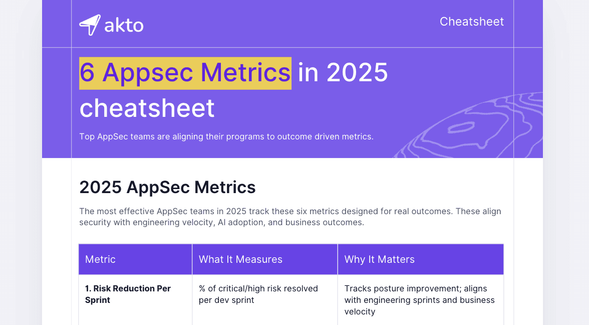 The most effective AppSec teams in 2025 track these six metrics designed for real outcomes. These align security with engineering velocity, AI adoption, and business outcomes.